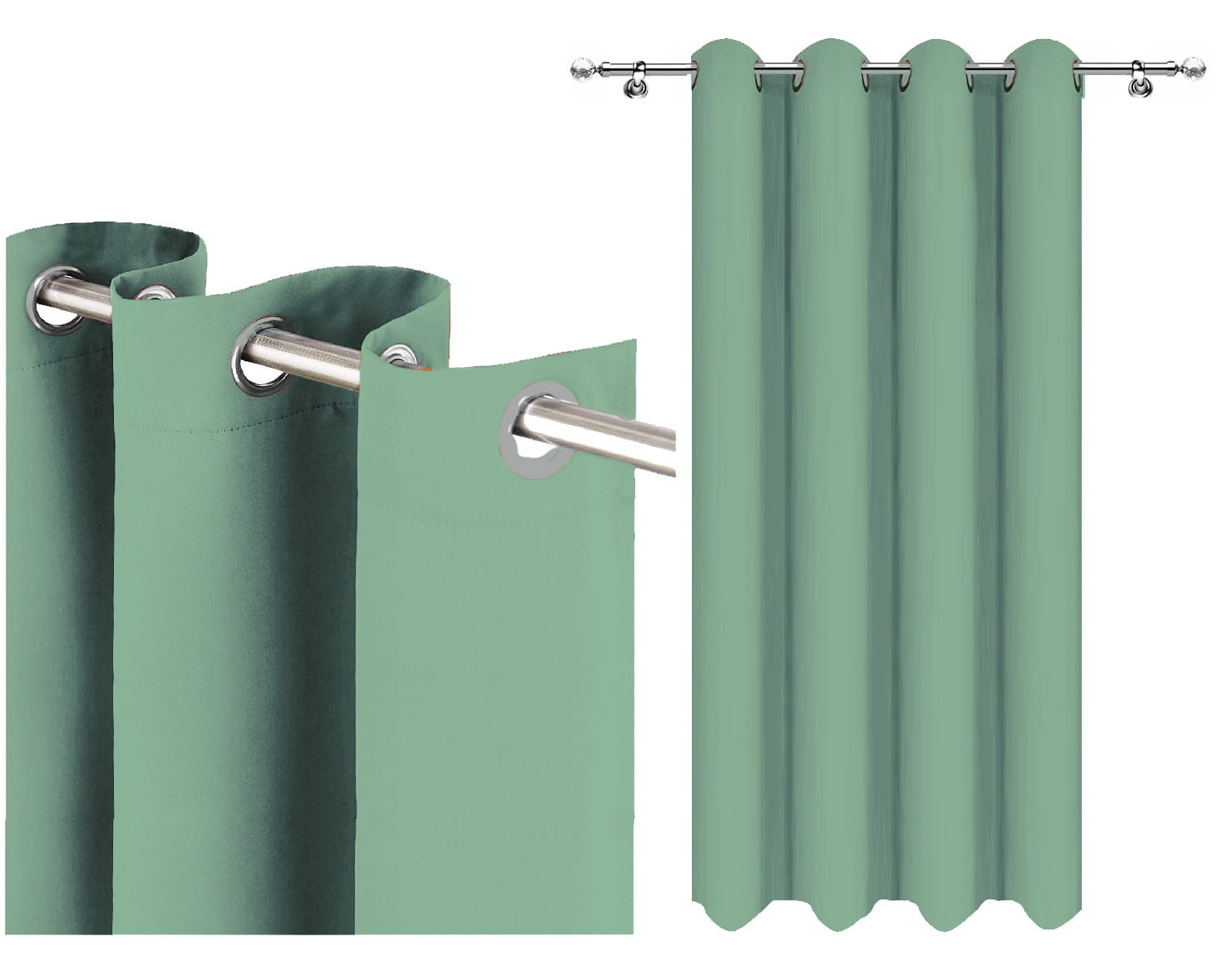 Zasłona u góry wykończona metalowymi przelotkami, brzegi obszyte.